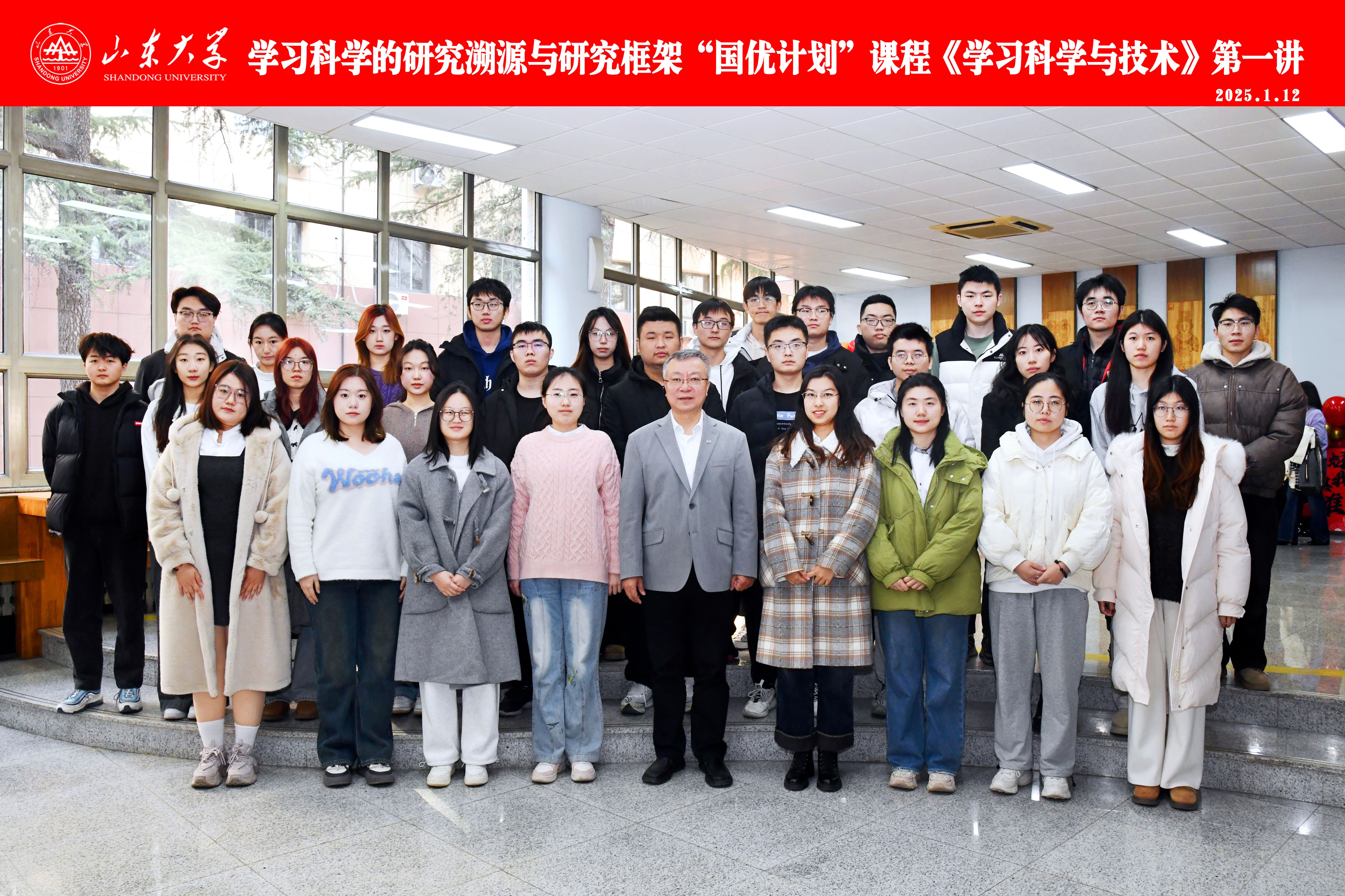 1月12日,山东大学党委书记任友群教授为“国优计划”学生讲授教育模块专业核心课程《学习科学与技术》第一讲。